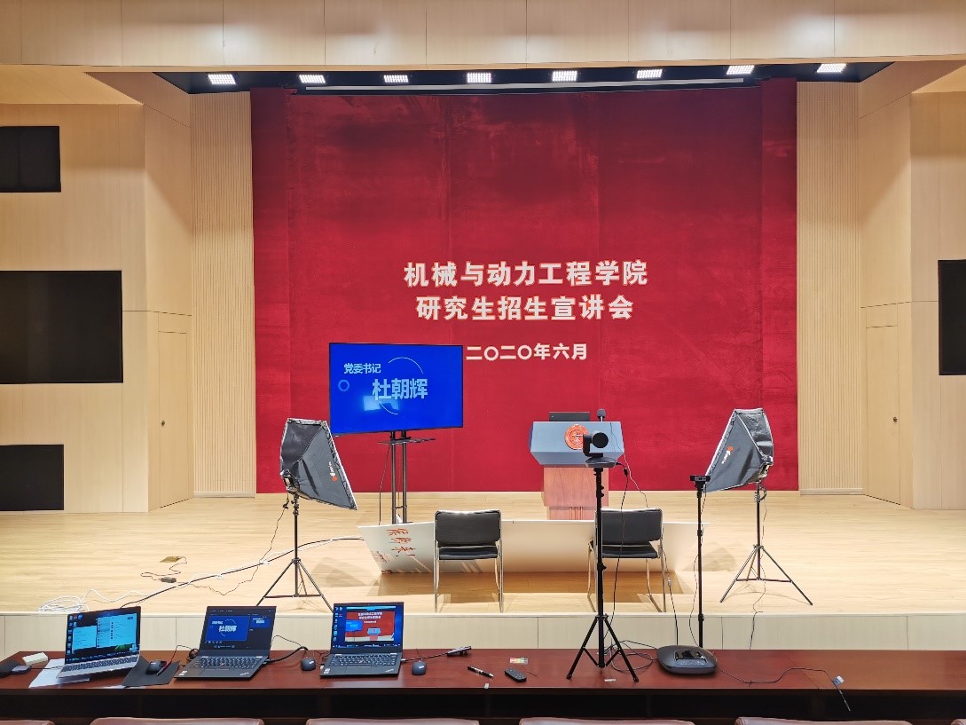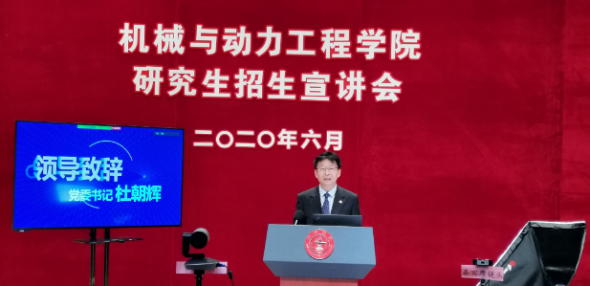 6月20日,学院党委书记杜朝辉、院长兼党委副书记彭志科、党委副书记熊振华、机械工程系主任朱利民、动力与能源工程系主任代彦军、机械学科长江学者来新民、动力学科长江学者王如竹、核科学与工程学院院长顾汉洋、工业工程与管理系主任潘尔顺、学生代表王紫璇、尹念、研究生教务办公室副主任赵晓明与全国各地优秀学子齐聚云端宣讲会,宣讲嘉宾、现场主控、导播、化妆师等工作人员多方合力、精准配合,呈现了一场饱满充实的云端招生宣讲会。
