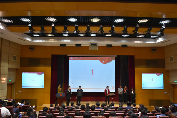 结业式结束后,第六届“一站到底”党史校史知识竞赛决赛展开激烈角逐。本次竞赛共有30支队伍报名,27支队伍参加了4月24日进行的初赛。初赛为笔试形式,经过四轮笔试、一轮补试与一轮加试,共有8支队伍脱颖而出,他们分别是来自核科学与工程博士生党支部的“核你站到底”队,核科学与工程硕士生党支部的“核学院特派”队,智能制造所研究生党支部的“智能时代”队,工业工程系硕士生党支部的“站到底”队,薄板结构制造所博士生党支部的“薄板结构制造”队,本科生第四党支部的“你问我答”队,本科生第一、第三党支部联合组建的“心中有党”队以及来自振动所研究生第一党支部的“振动所一支部代表”队。
