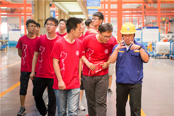 第二日上午,社会实践团队开始进行对徐工集团的正式访问。团队参观了国际领先的起重机转台和底盘智能生产线,观看了习近平总书记对徐工集团进行视察的新闻报道视频。之后,徐工集团人力资源部部长高飞对实践团队表示热烈欢迎,并围绕着“幸福都是奋斗出来的”的主题对团队成员进行职业生涯规划指导,与交大师生展开密切的交流,双方互送纪念品。此后,在工作工作人员的带领下,实践团队参观了徐工重型展厅,了解到徐工集团一路的发展历程。当日下午,在徐工集团工作人员的陪同下,交大师生参观了徐州当地的淮海纪念塔,缅怀在淮海战役中壮烈牺牲的革命先烈。